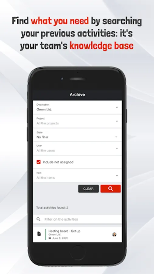- Search through your old activities to take advantage of your team's knowledge base.
