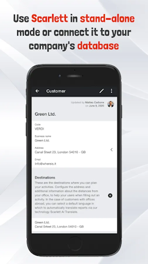 Scarlett is a new service designed to digitalise the reporting of the interventions. Technicians, consultants and other professionals: anyone can take advantage of the platform, due to its highly customisable nature. It allows you to fill out the statements easily and to plan your weekly activities quickly.
