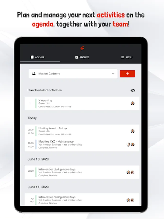 - Plan and manage your next activities on the agenda, together with your team!