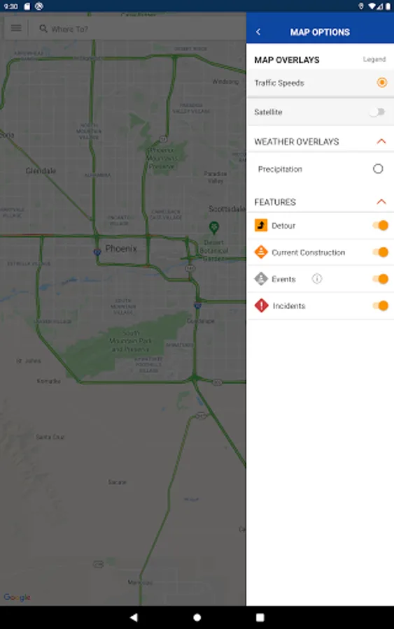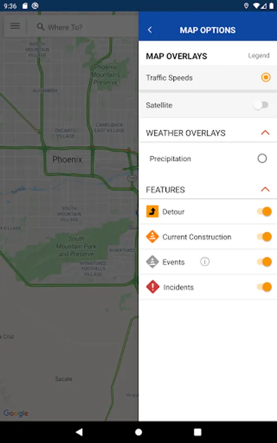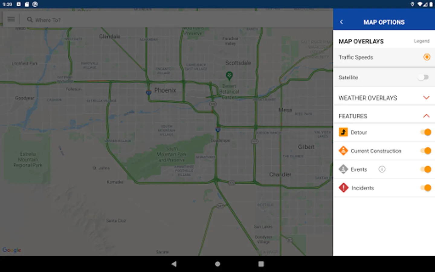 Up-to-the-minute live traffic information displayed in an easy-to-use map format