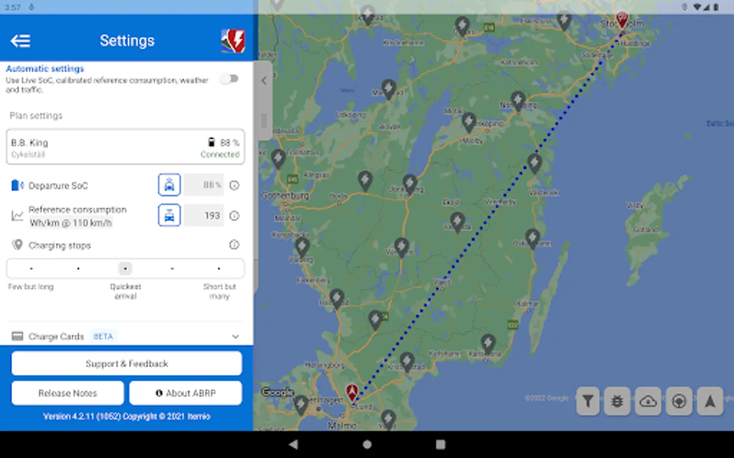A Better Routeplanner is the world's most appreciated service to plan, learn and dream about Electric Vehicles - EVs. Simply select your vehicle model, enter your destination and hit plan to get a full trip plan including charge stops and trip duration.