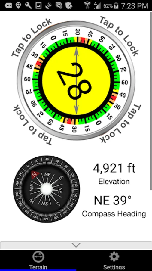 When you have your phone aligned with the slope, a single tap on the screen will lock the data so you can read it. The Avalanche Inclinometer will even speak to you as you’re measuring the steepness so you won’t need to look at the screen. And the BIG inclinometer dial changes colors based on the slope which provides instant feedback on how the steepness of the terrain is contributing to the likelihood of an avalanche.