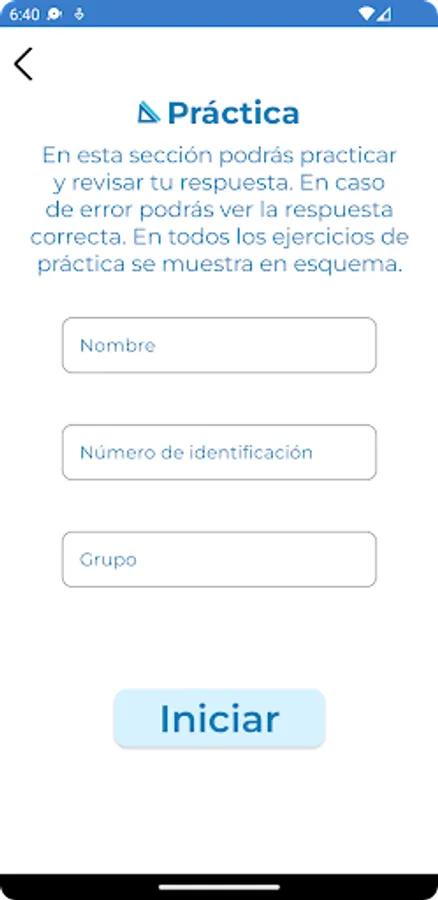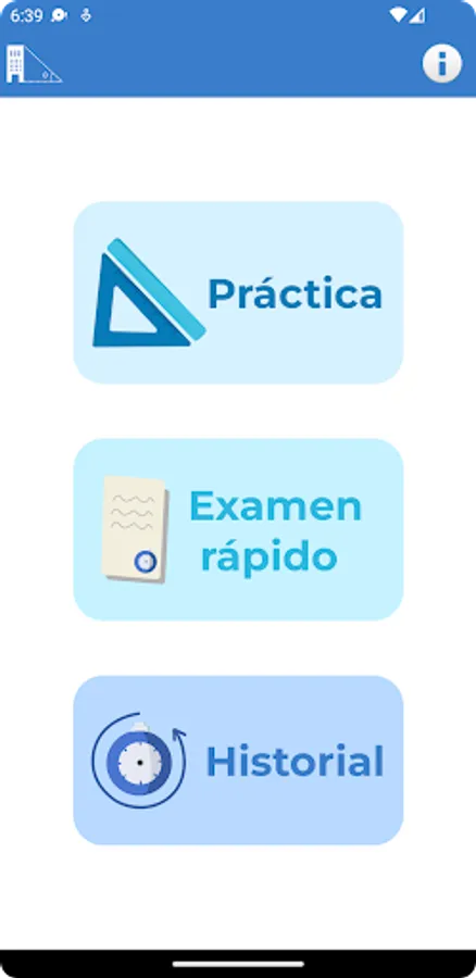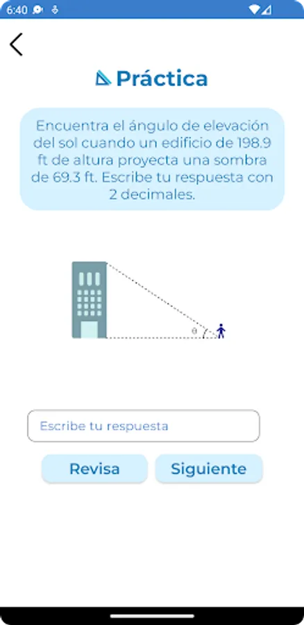 The application has a practice part, in which you can solve as many exercises as you want and it will keep a record of the number of exercises solved and the time in which you solved them. It also has a quick exam part in which you can measure your abilities to solve right triangle application problems with a time limit.