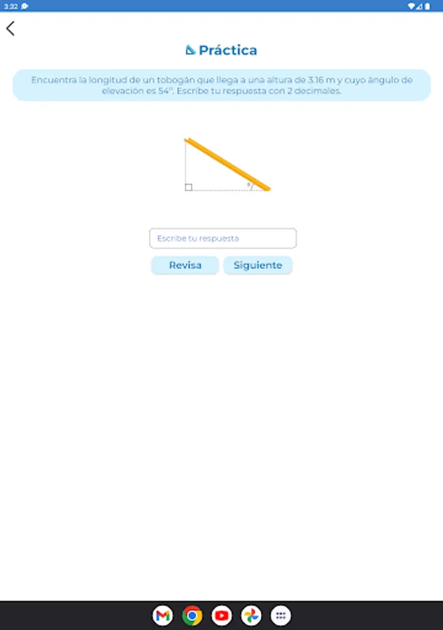In this application you will be able to practice solving various everyday situations in which right triangles are used.