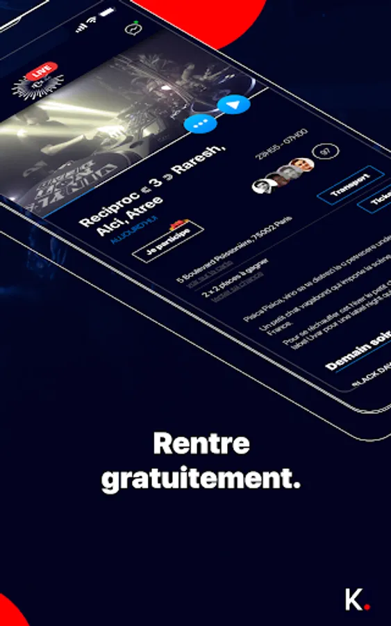 Don’t worry about finding your ticket, Kraze does it for you by giving access to all the ticketing platforms available for each event. Want to know how to get there ? Click on the transport button to find the most adapted travel choice for your need and budget.