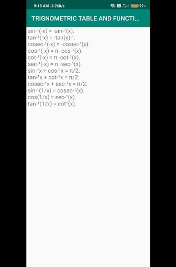 This app provides all trigonometry formulas which is helpful for all level of students who require trigonometry in there study.