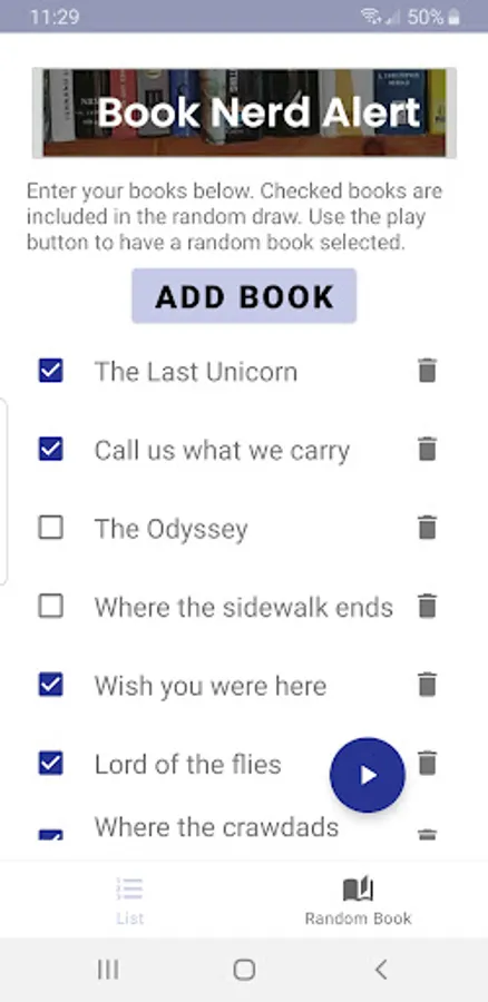 Add your list of To Be Read (TBR) books to this app, and it will randomly select the next book that you should read. Book titles are saved for you so they are only entered once.