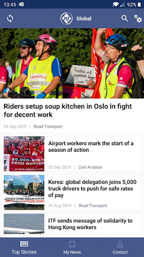 The ITF Global app brings you the latest news from the International Transport Workers’ Federation wherever you are. Download it now to your smartphone and get: