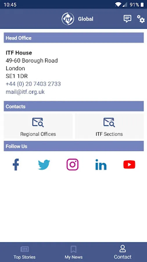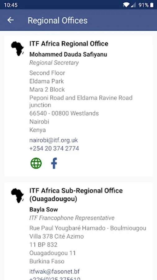 - contact details for the ITF, our regional offices and our sections