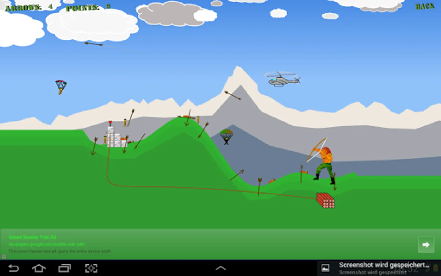 Your country is being invaded by a superior force. Your enemies attack from the ground and the air - they are parachutes and paragliders launched from an enemy aircraft - a helicopter. Since the enemy has already killed your companions and also destroyed your entire equipment you have to do the job alone under the use of limited resources.