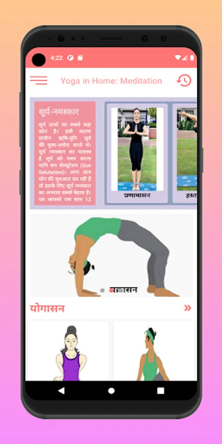 Yoga in home: Meditation app is a step by step guide for yoga asana, yoga mudra and Surya Namaskar. yoga in home app in hindi is the best hindi offline/online app for beginners as well as experienced yoga practitioners as it contains advance yoga asana.