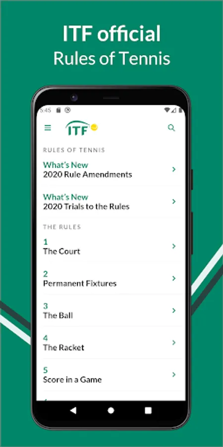 BEFORE DOWNLOADING THE APP, PLEASE READ THE TERMS AND CONDITIONS OF USE HERE: https://www.itftennis.com/media/3412/rules-of-tennis-mobile-application-terms-and-conditions.pdf