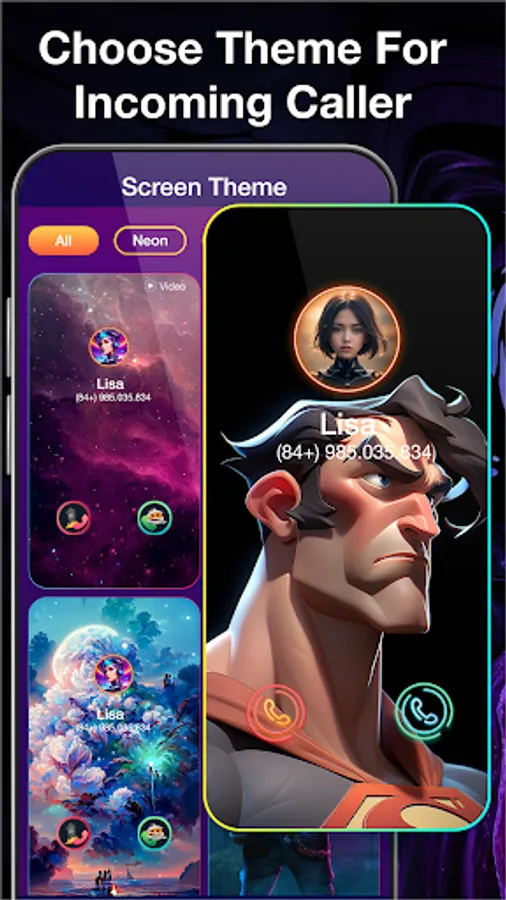 You can choose from a variety of color call themes to suit your mood. The app provides you with different call screen theme styles such as neon, Halloween, Marvel, car & moto, and nature. When you receive or make a phone call, the incoming call theme will show up, giving you a colorful and lively experience.