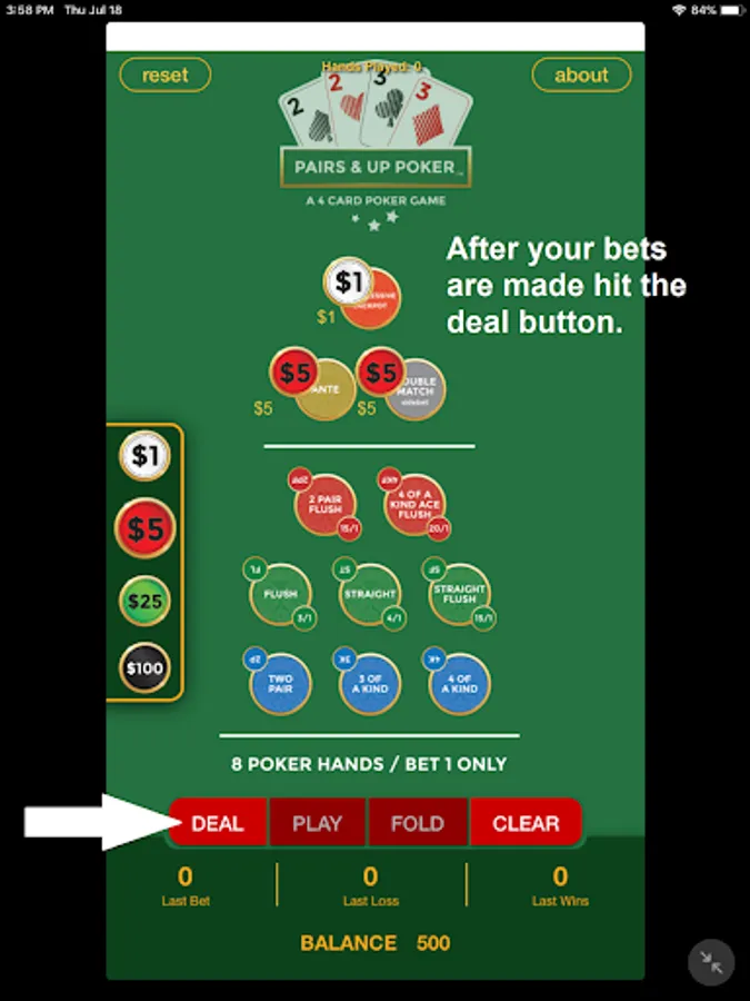 Pairs & Up Poker is a brand new 4 card poker game unlike any you have ever played!
