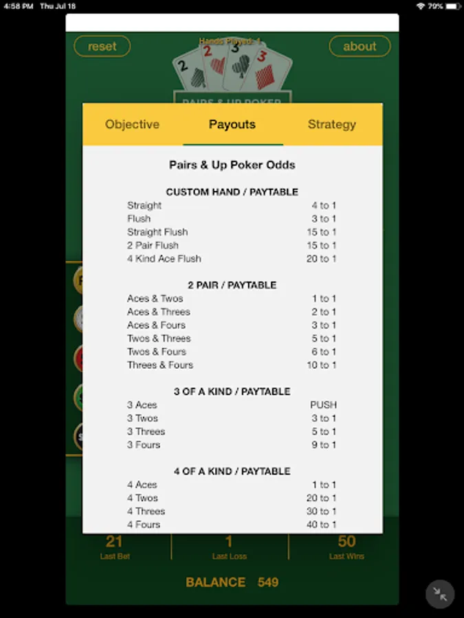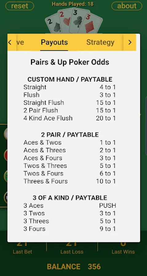 Pairs & Up Poker is intended for an adult audience of 17 years and up. Pairs & Up Poker does not offer real money gambling nor any opportunity to win real money or prizes. This game is strictly for your entertainment. Practice or success at social gaming does not imply future success at real money gambling. This game is free to play, but that policy may change sometime in the future. ♥♣♦♠