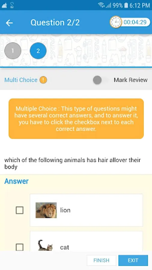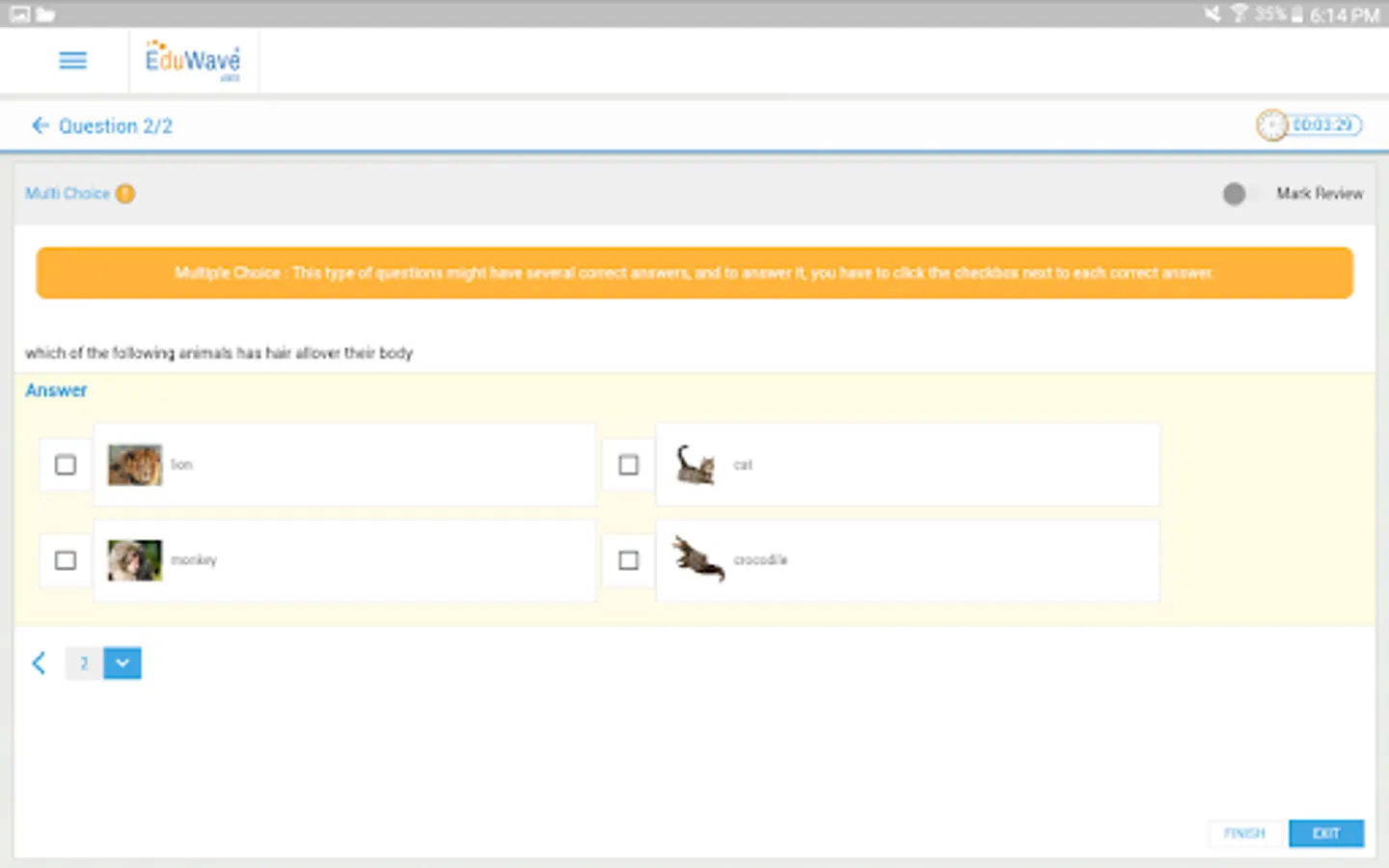 - They can also mark any questions for review if uncertain about the answer and the system will notify the student prior to finishing their exam.