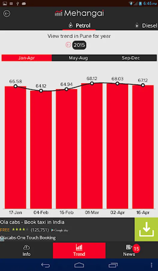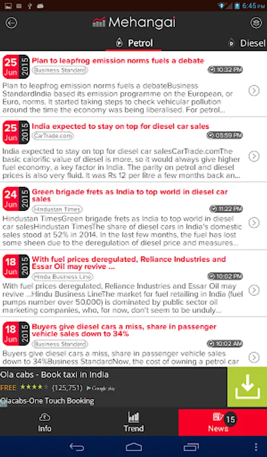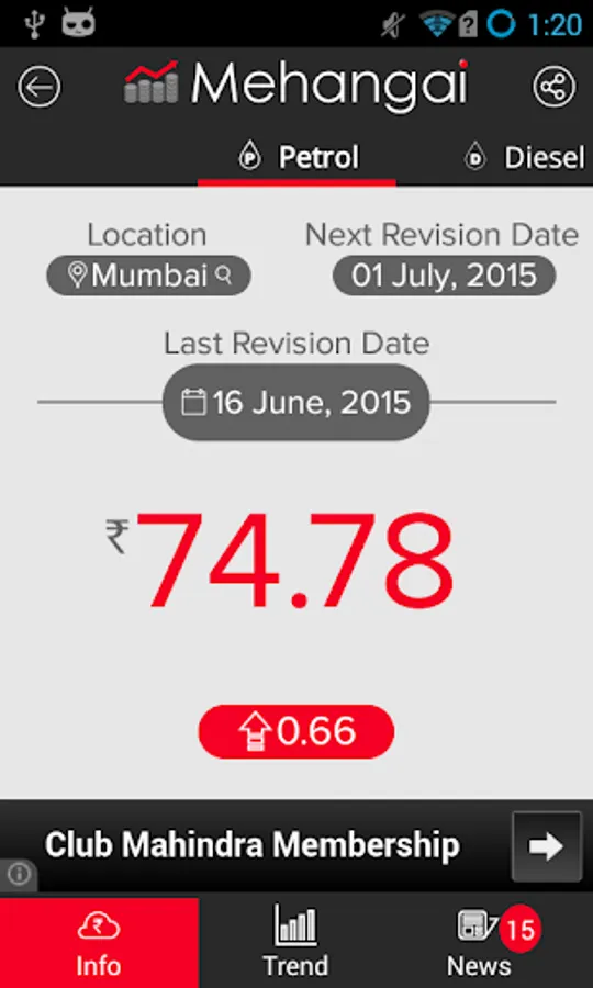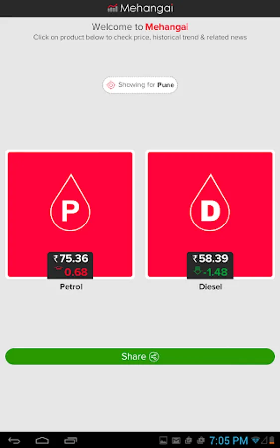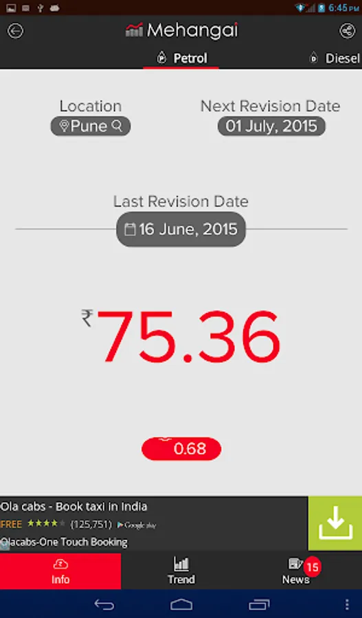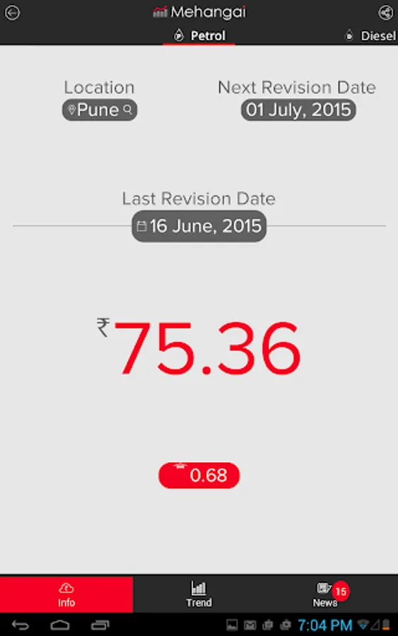 - Check the latest prices of petrol and diesel at your current location and different places in the country.