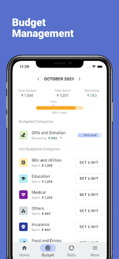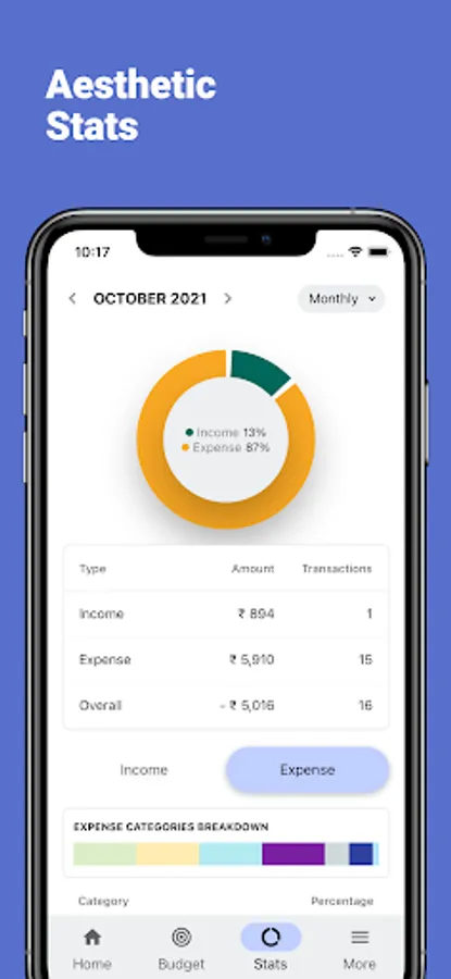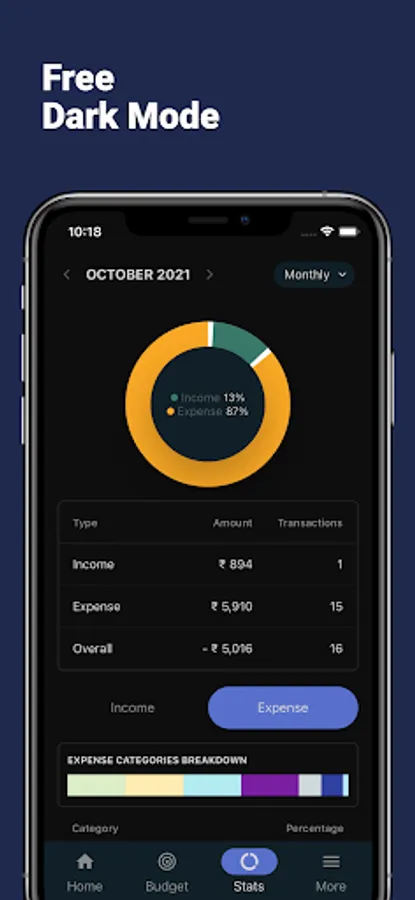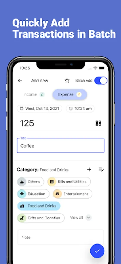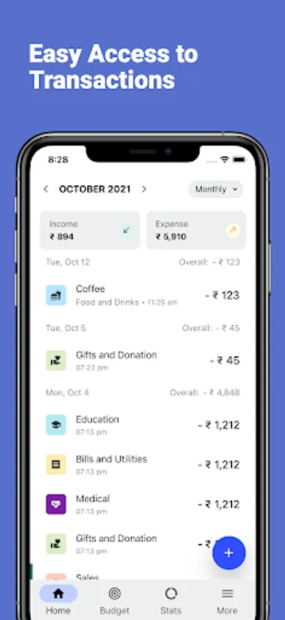 Category-wise income and expense tracking for Groceries, Shopping, Salary, or more.