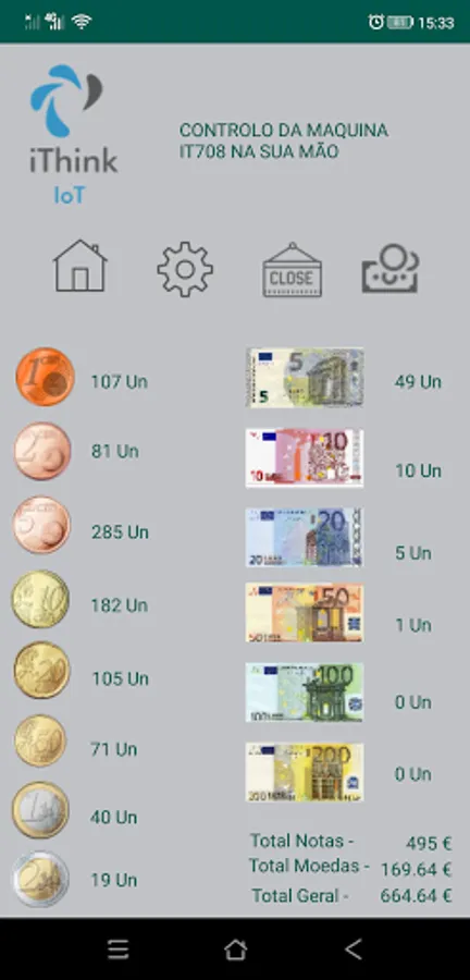 Application developed to control your iThink IT708 machine in real time. See quantities of denominations in recyclers in real time. Presentation of period summaries. Possibility of closing the period through the App.