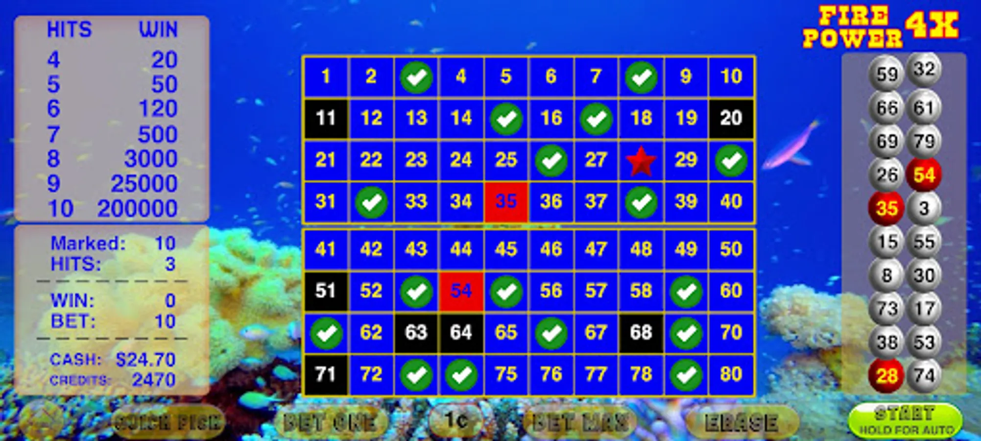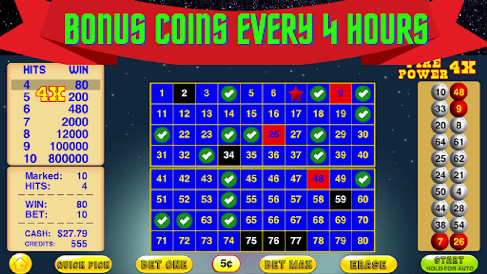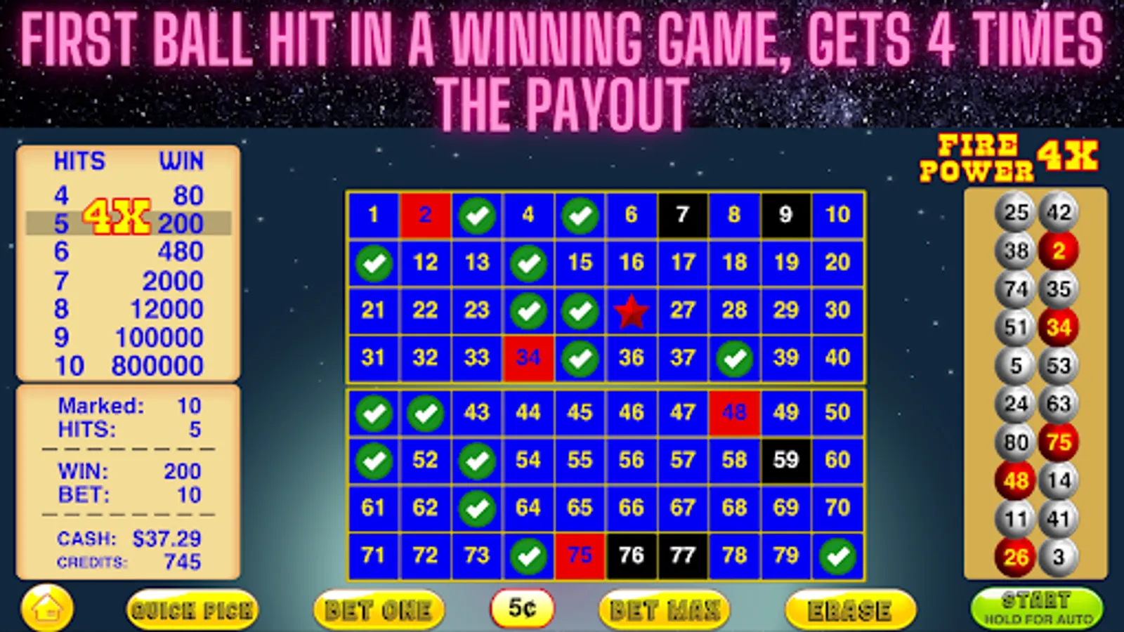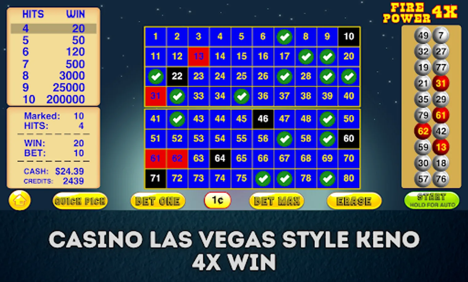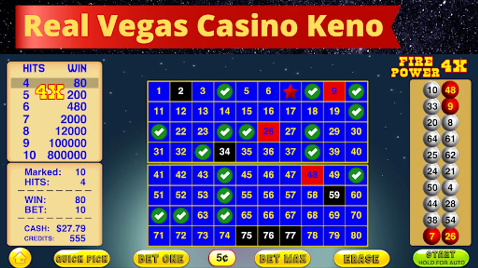 This Keno Fire Power 4X Game has the highest Keno 80 Odds!