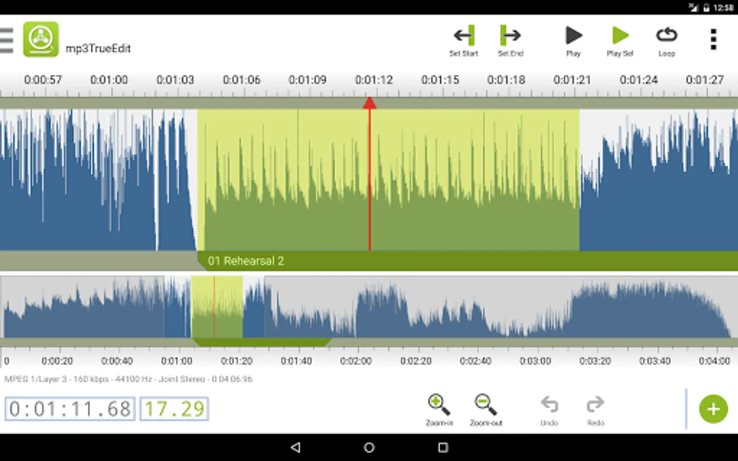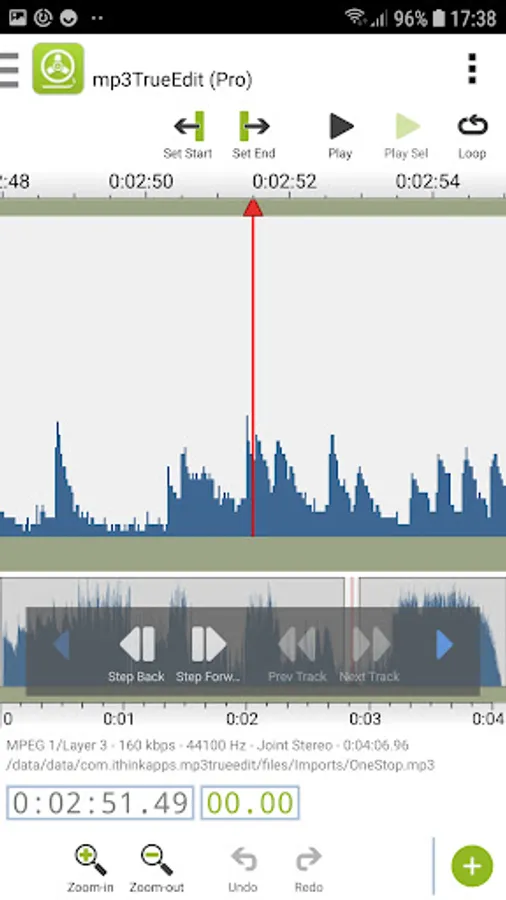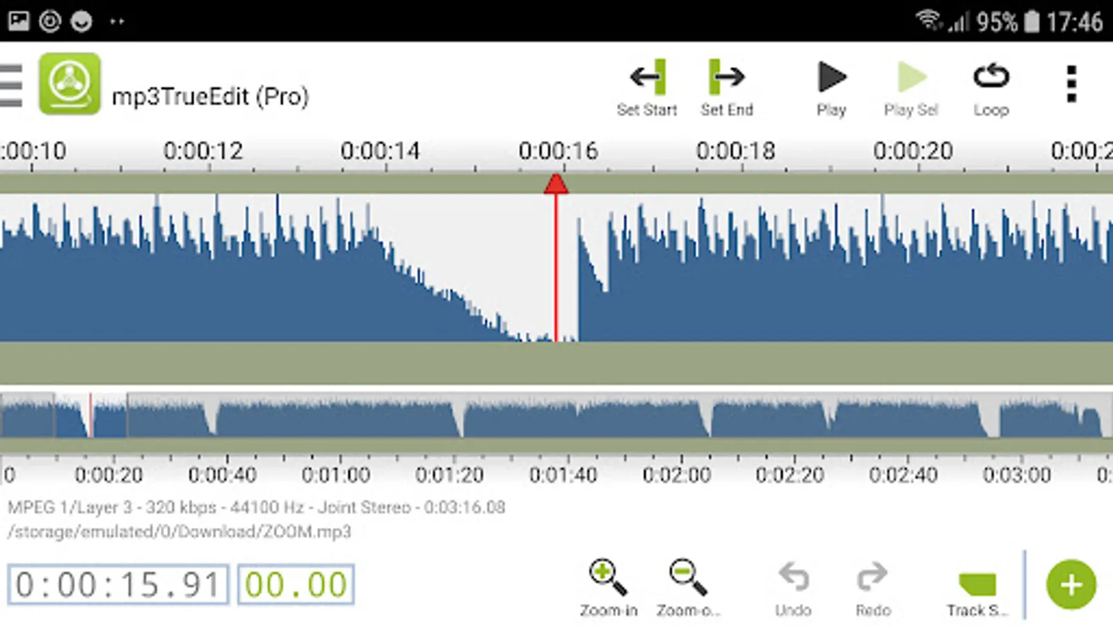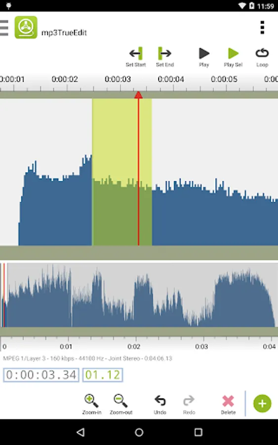 mp3TrueEdit knows about the internal format of MP3 and AAC audio files and its advanced algorithms allow it to make all its edits without any audio quality loss or file corruptions. It doesn't need to decompress and re-compress audio in order to make any edits or view the audio so it's lightning fast, even with large audio files.