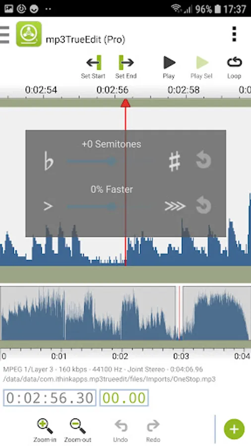 With mp3TrueEdit you can easily record, edit, play and create MP3 and AAC audio projects that allow you to save your work at any time. Then, you can then ‘export’ your edits without any quality loss at all! During playback or converting you can also change the pitch or tempo to suit your needs although changing pitch and tempo or converting will involve some loss in quality.