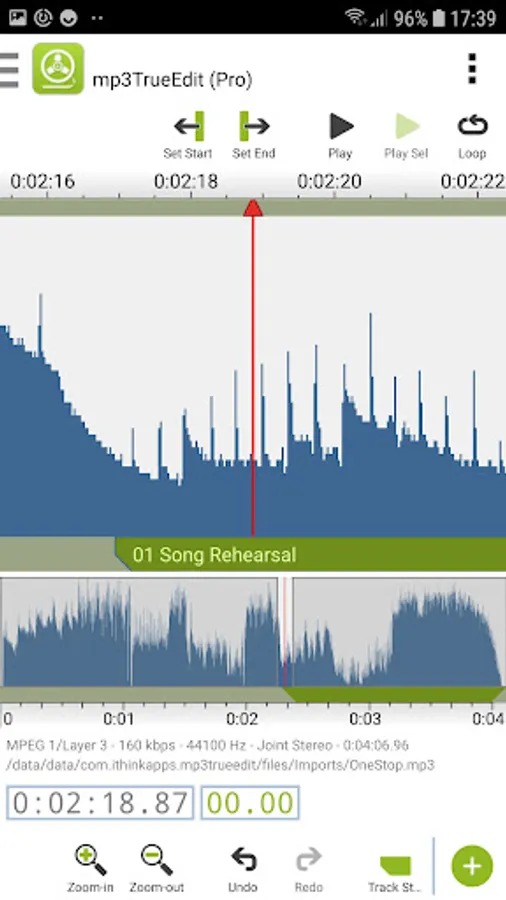As well as this the upgraded mp3TrueEdit (Pro) allows you to join audio files of the same type (by appending them) or split audio into separate files by creating and exporting tracks.