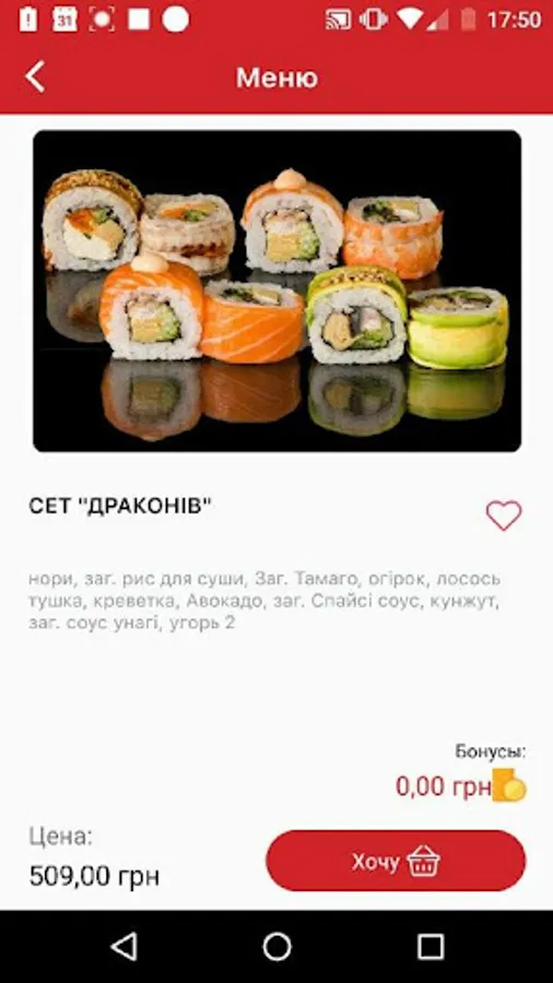 Using the mobile application Sushi bar Asahi Vinnitsa, you can easily order sushi for every taste. Also in our menu you will find rolls, salads, desserts, hot appetizers and more. Sorting by price, detailed descriptions and high-quality photos of dishes available in the application will help you choose exactly what you want.