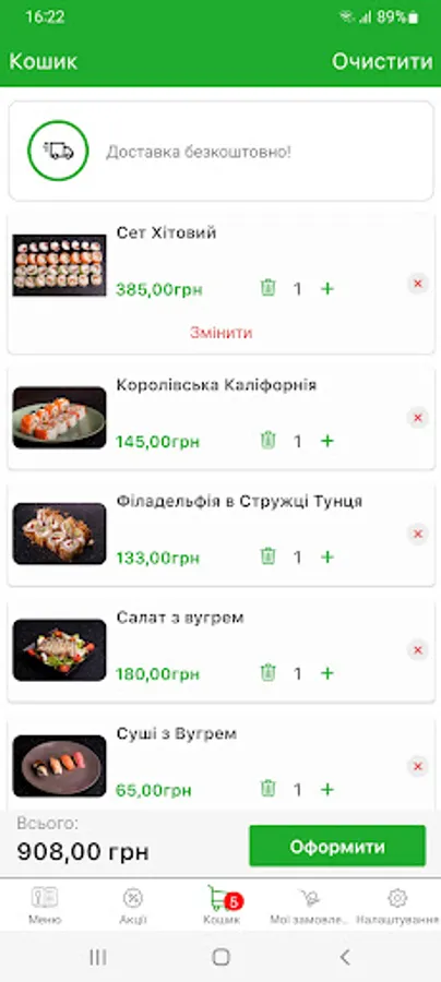 With the Avocado_sushi application, it is easy to order sets, rolls, as detailed descriptions and photos of the dishes are available in the application