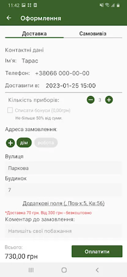 • set the desired delivery time of the order to the specified address;