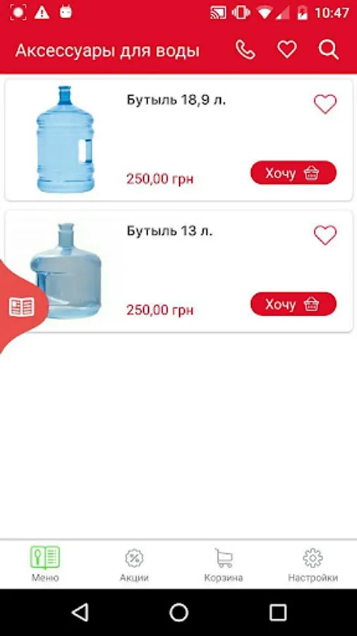 Using the mobile application Water Exactly, you can easily order delivery of drinking water. Available in the app sort by price, detailed descriptions and quality photos will help you choose exactly what you want.