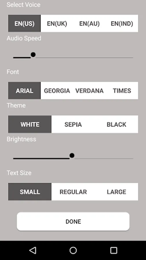 -Word by Word Voice Narration with 5 voice types and adjustable voice pitch.