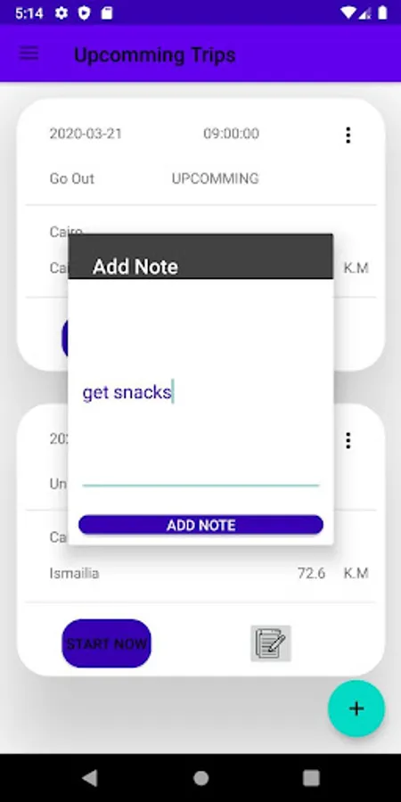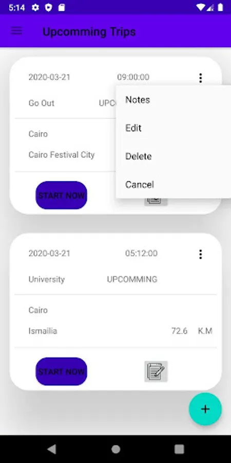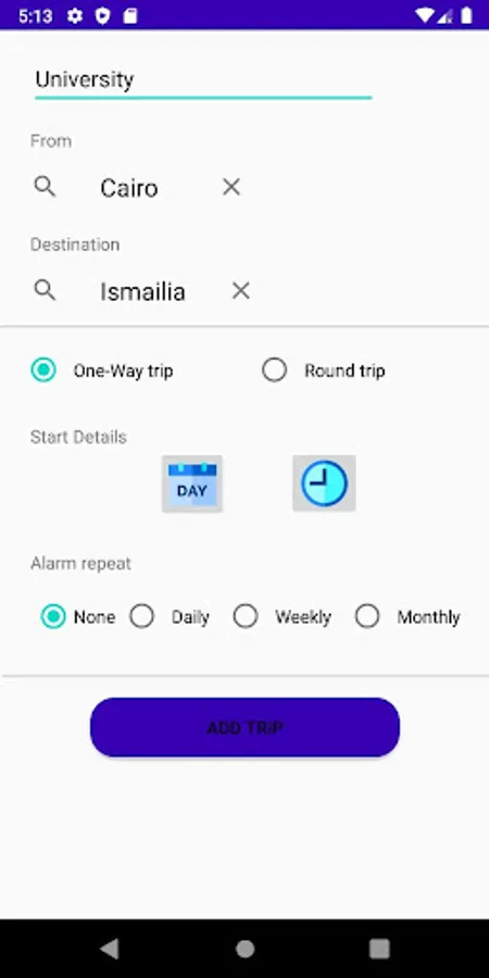 Android Mobile Application that helps you to record your planned trips with the start and destination, accompanied by the date and time of the trip and notes. The application will remind you of his trips on the time specified. In addition, the application should navigate you to his destination. After that, the application should keep track of the upcoming and past trips.
