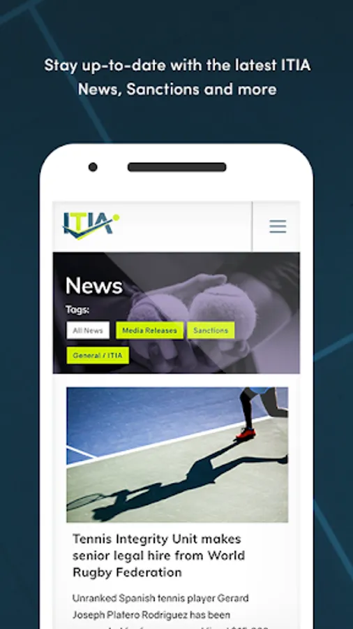 The International Tennis Integrity Agency (ITIA) app is an interactive mobile resource designed to provide you with up-to-date guidance and information on the Tennis Anti-Corruption Program (TACP).
