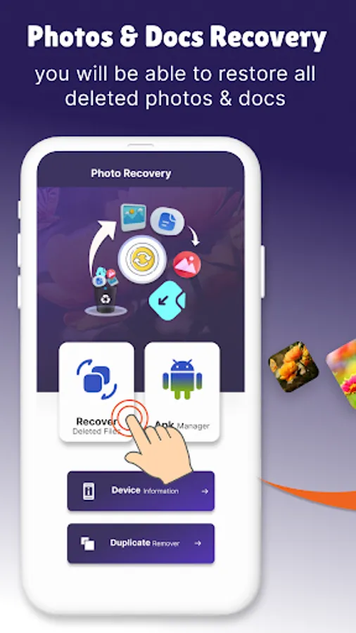 Download the restore photos app and checkout it's recovering performance, restore deleted photo and recently deleted photo recovery app with amazing features through which you can recovered files with lost pictures recovery where you will be able to see the data and recover deleted photos that you have deleted or got lost accidently and want to undelete them by the help of mobile recover deleted files app. Checkout undelete photos and deleted data recovery app with most compact functions such as phone rescue which means to restore delete photo recovery just with on click you will find lost photos and restore them without losing quality.