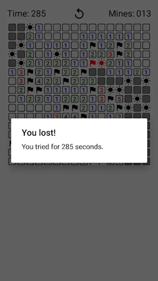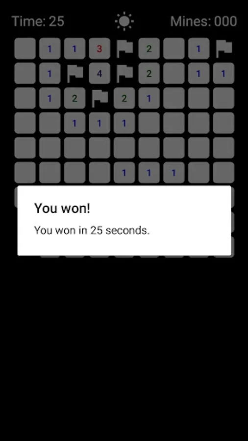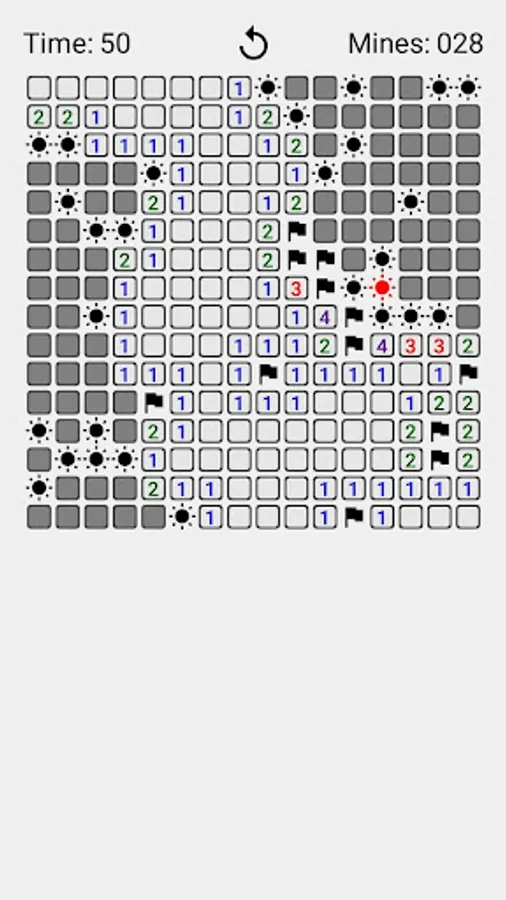 Choose between 3 levels of difficulty, Easy (9x9), Medium (16x16) and Hard (30x16).