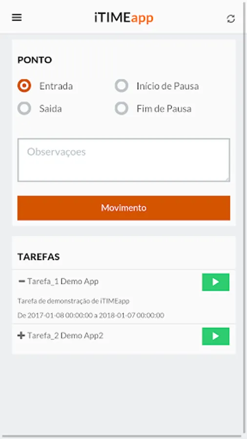 For demonstration, just perform authentication with user / password: 1/1 and Company Code: WEBDEMO. Access http://itimeweb.com with the same access credentials to interact with the application.