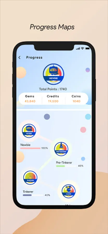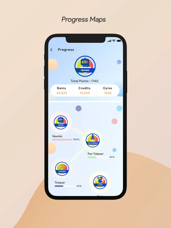 iTinker app is built like a game with where children need to cross multiple levels of learning, divided into three sections -