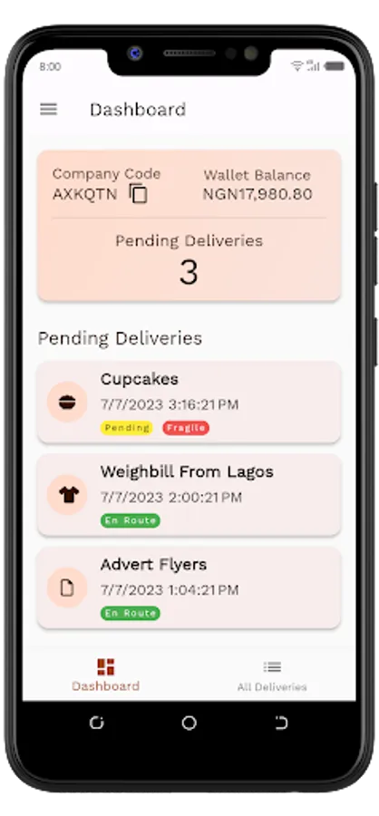 Deleeva C is the app for dispatch (delivery) companies and their couriers to manage deliveries. Once registered, a delivery company then receives delivery requests to handle. When delivery is complete, the company is settled for the delivery.
