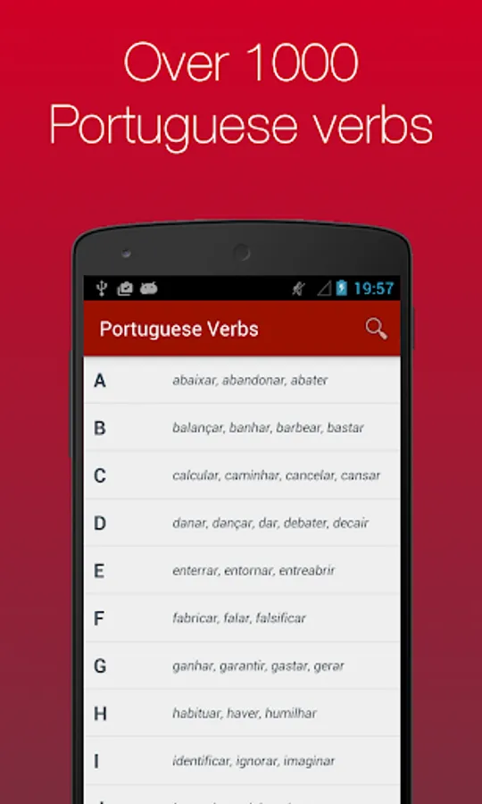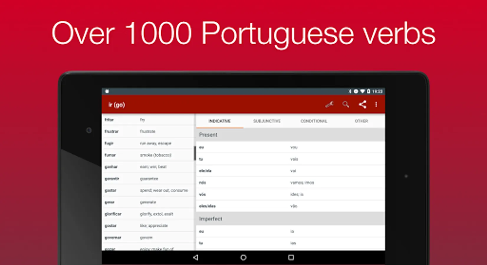 View over 1000 Portuguese verbs in 18 tenses. With simple navigation and built in search, you can find the verb you need in seconds.