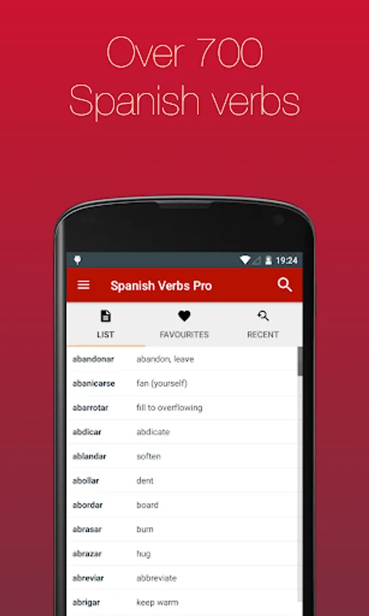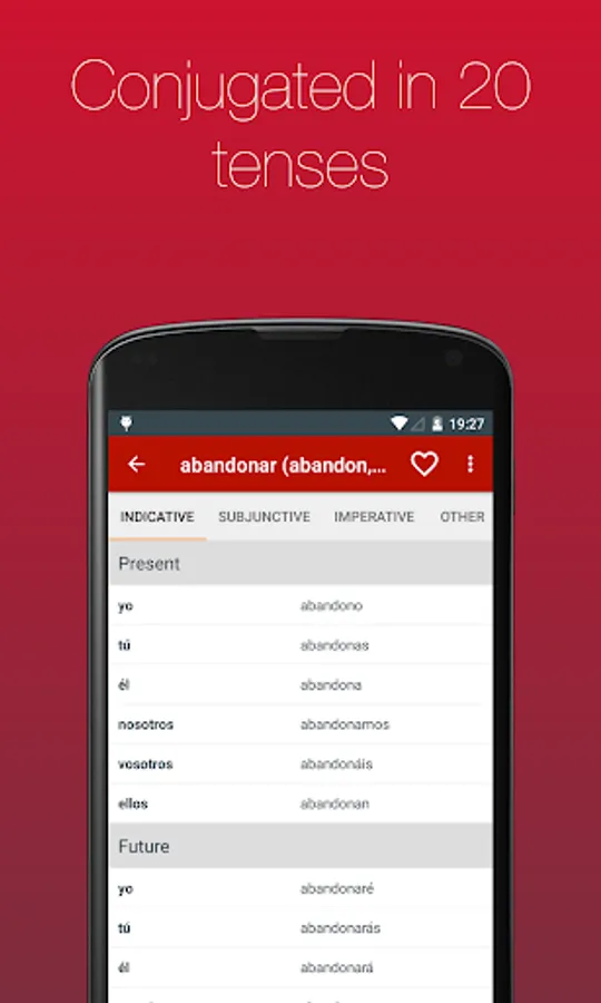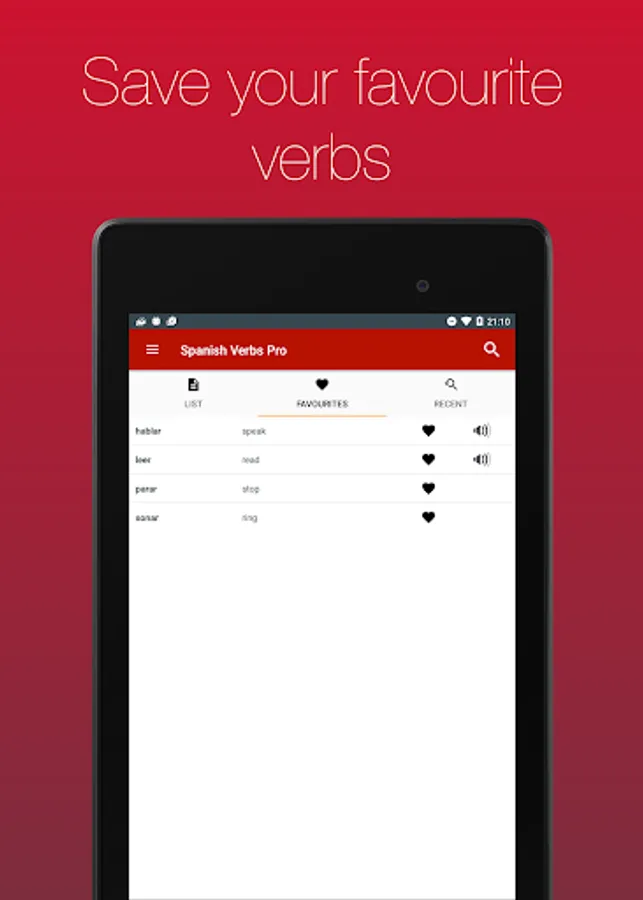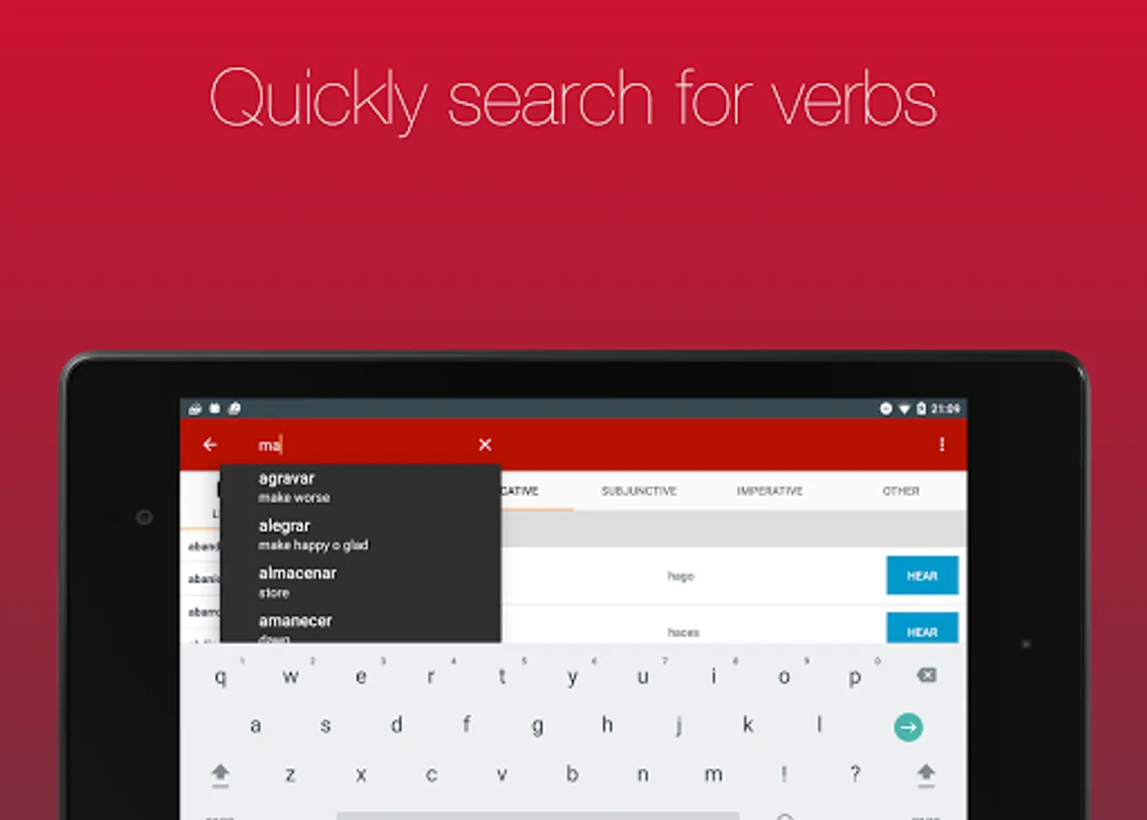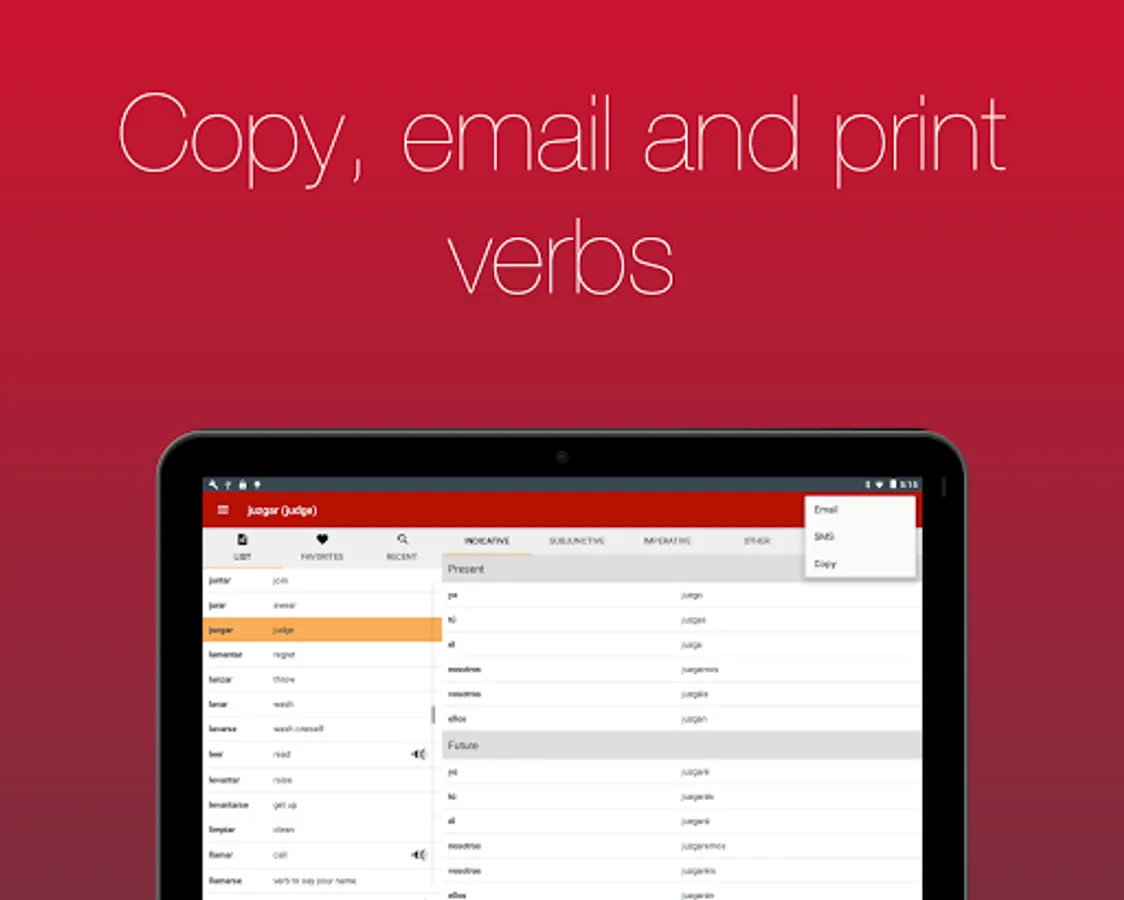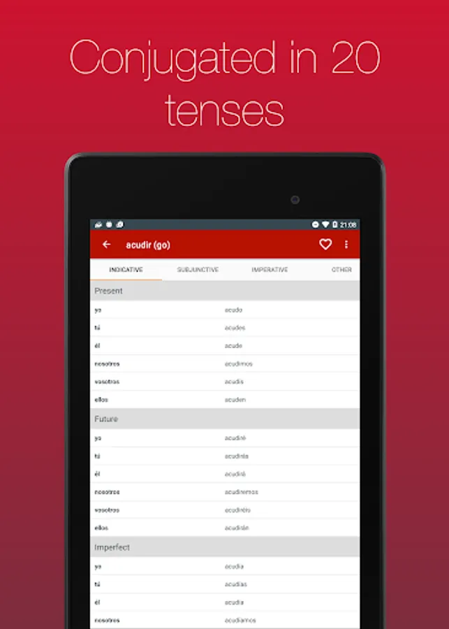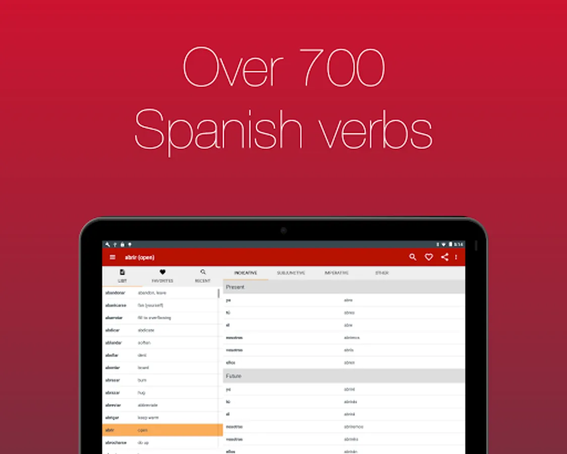 View over 700 verbs in 20 tenses. With simple navigation and built in search, you can find the verb you need in seconds.
