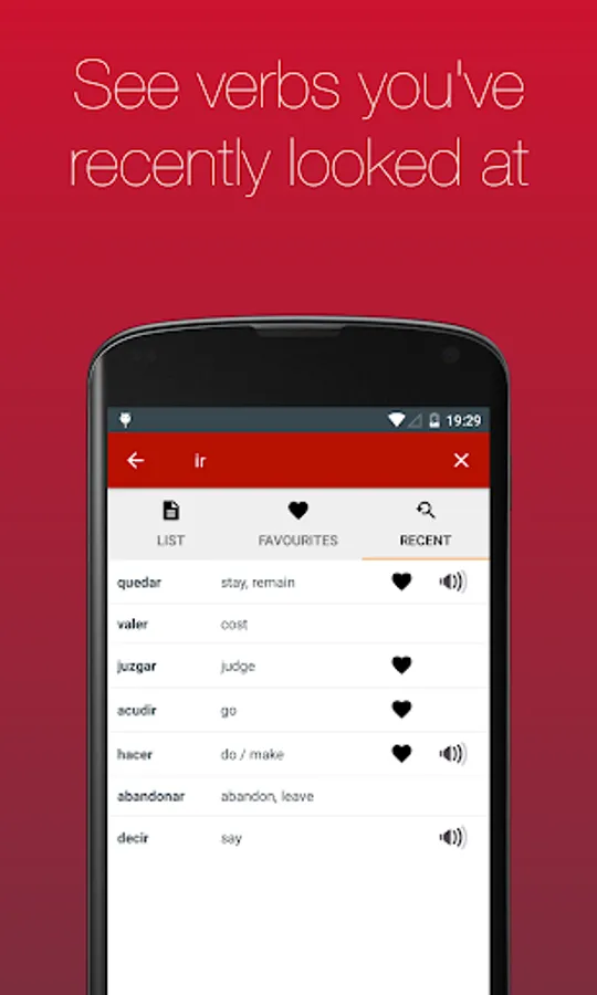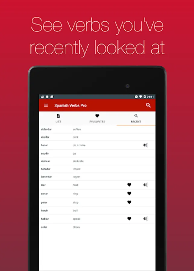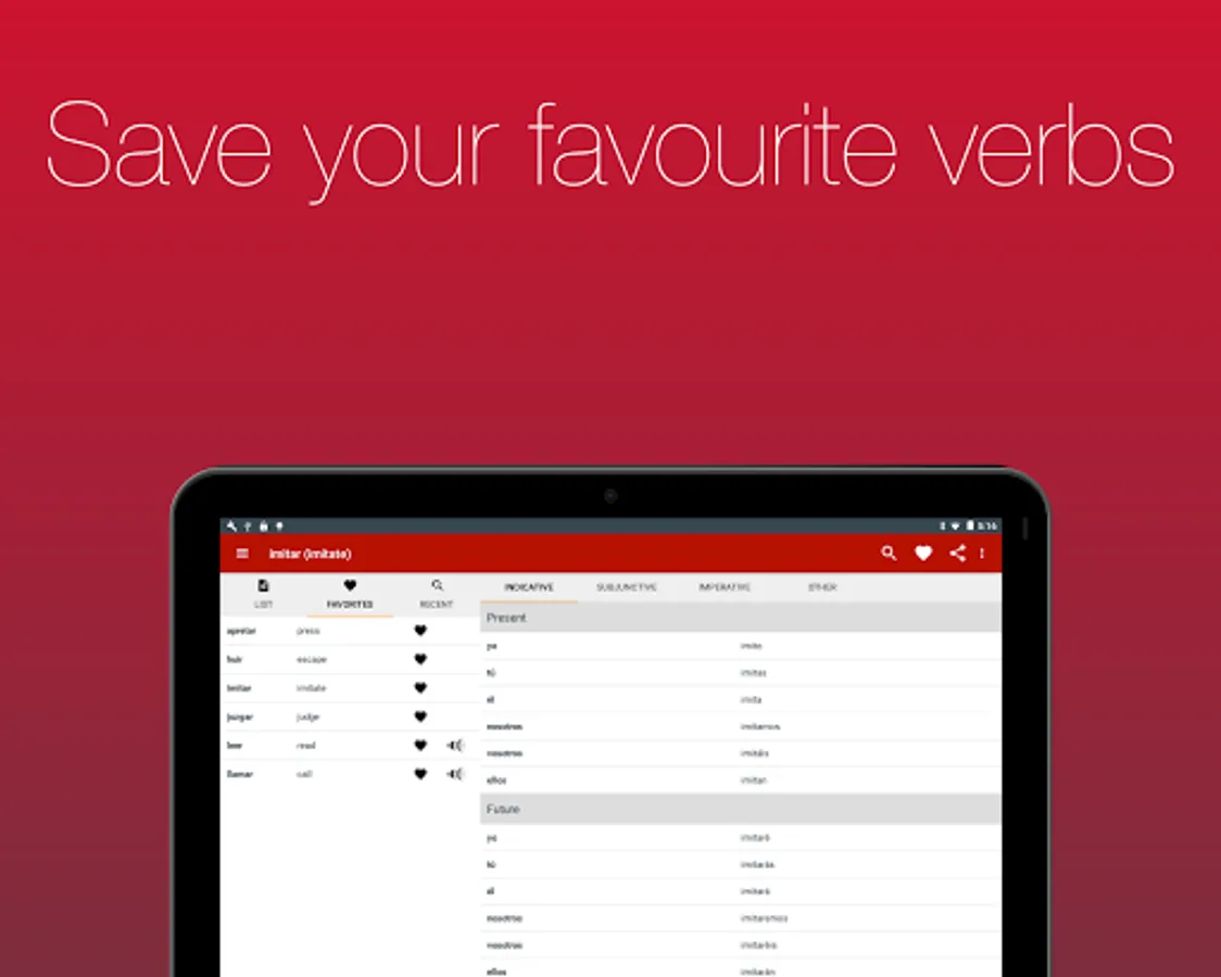 Now with audio!! Not sure how to pronounce a verb? You can now hear how every verb is pronounced. Just tap on the button next to the conjugation. Note: this functionality requires an Internet connection.