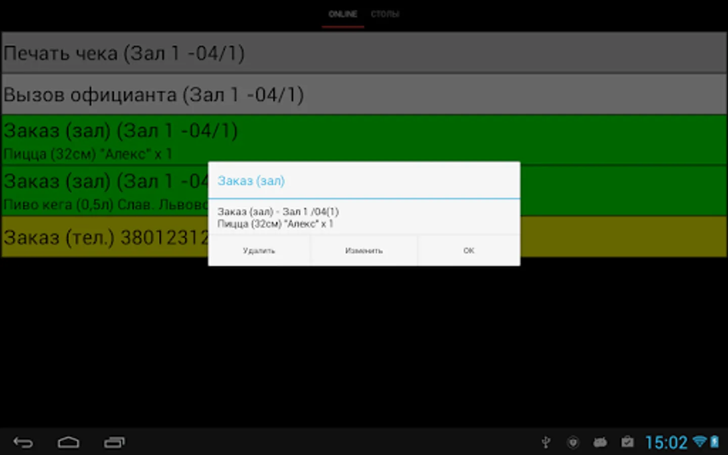 Appendix waiter platform ITKafe. It allows you to create and modify the waiter orders, count them, add notes to the dishes. It also allows the cook to see all the current orders for the manufacture of the notes and taken to mark the work and make the orders.