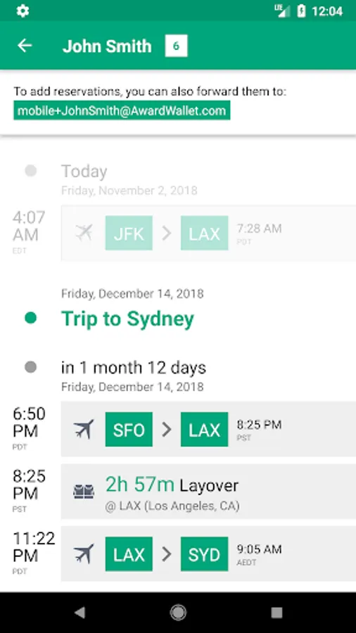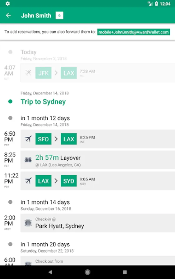 * Management of travel plans. Link your mailbox and let AwardWallet track all of your travel reservations. We will send you push notifications if and when your flights are delayed or canceled and let you share your travel plans with friends and family.
