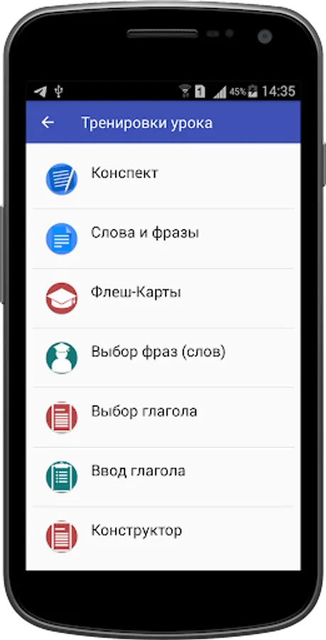 The program offers you simple expressions in Russian in the present and past tense, in one of three forms (affirmative, negative, interrogative).