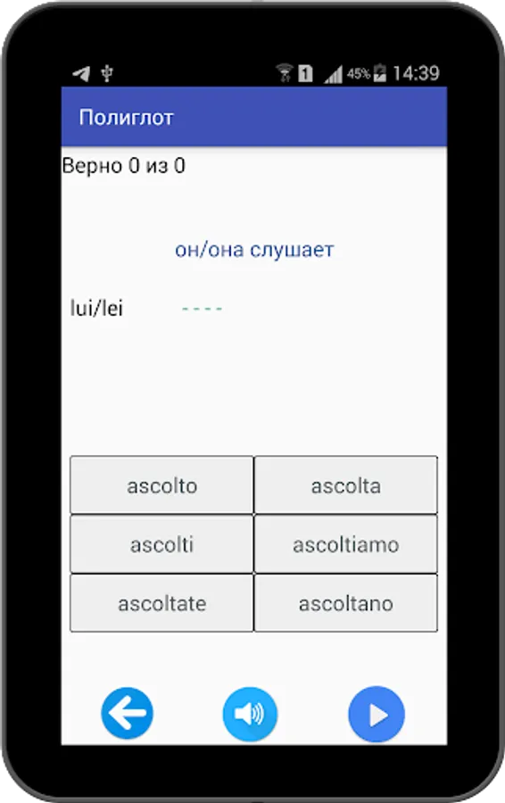 The program is designed to train conjugation of Italian verbs on persons in the present, past and future tenses. It is enough to conjugate Italian verbs 20 minutes a day using the Polyglot 16 Lessons program to master them automatically. "Polyglot 16 lessons - Italian." It will be very useful to everyone who watched the popular reality show "Polyglot.