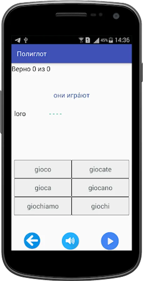 The program is designed to train conjugation of Italian verbs on persons in the present, past and future tenses. It is enough to conjugate Italian verbs 20 minutes a day using the Polyglot 16 Lessons program to master them automatically. "Polyglot 16 lessons - Italian." It will be very useful to everyone who watched the popular reality show "Polyglot.