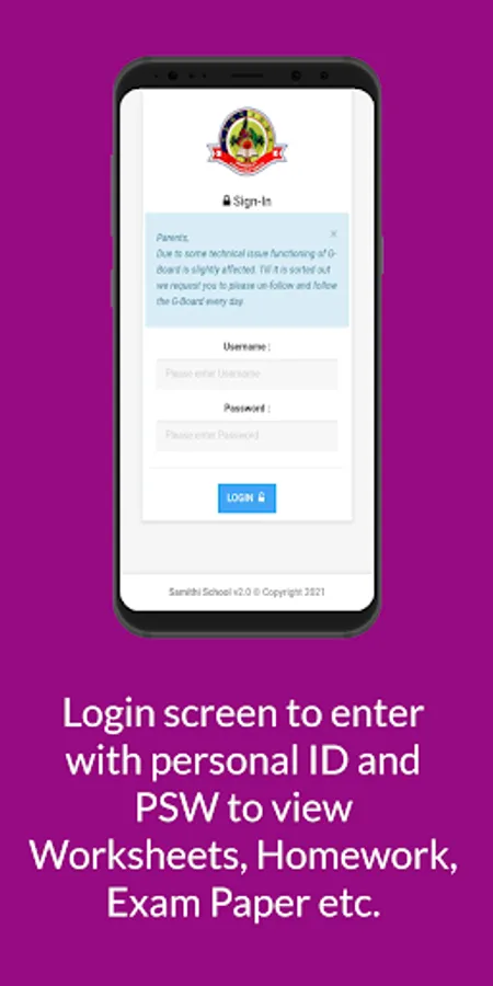 This app is exclusively for the students of Samithi English Medium School, GSEB section. All academic and non academic information will be shared through this app. The various information that will be available are like
