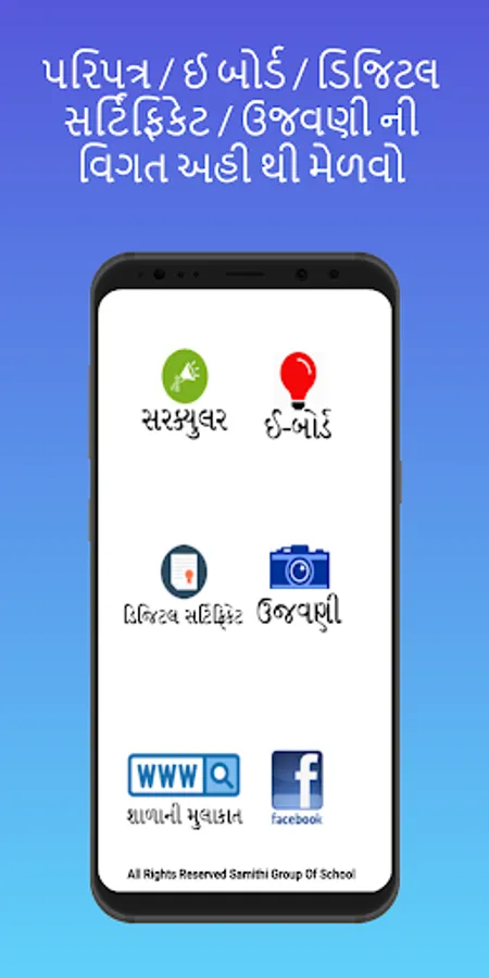 આ એપ્લિકેશન ફક્ત સમિતિ ગુજરાતી માધ્યમ શાળા માટે જ છે. વિદ્યાર્થીઓ અને વાલીઓ પરિપત્રો, કાર્યપત્રકો, હોમવર્ક, પરીક્ષાના પેપરો, ગેલેરી અને અન્ય શૈક્ષણિક અને બિન શૈક્ષણિક વિગતો જોઈ શકે છે.