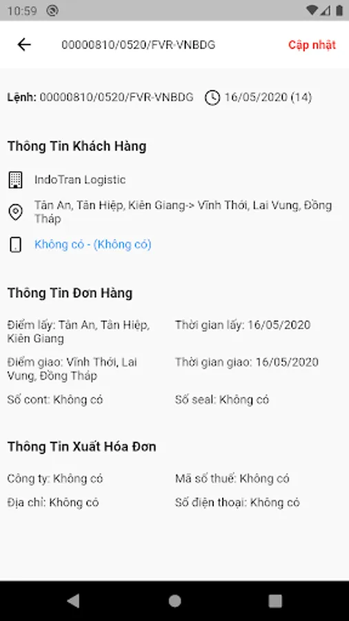 Application for delivery truck drivers to update orders and shipments